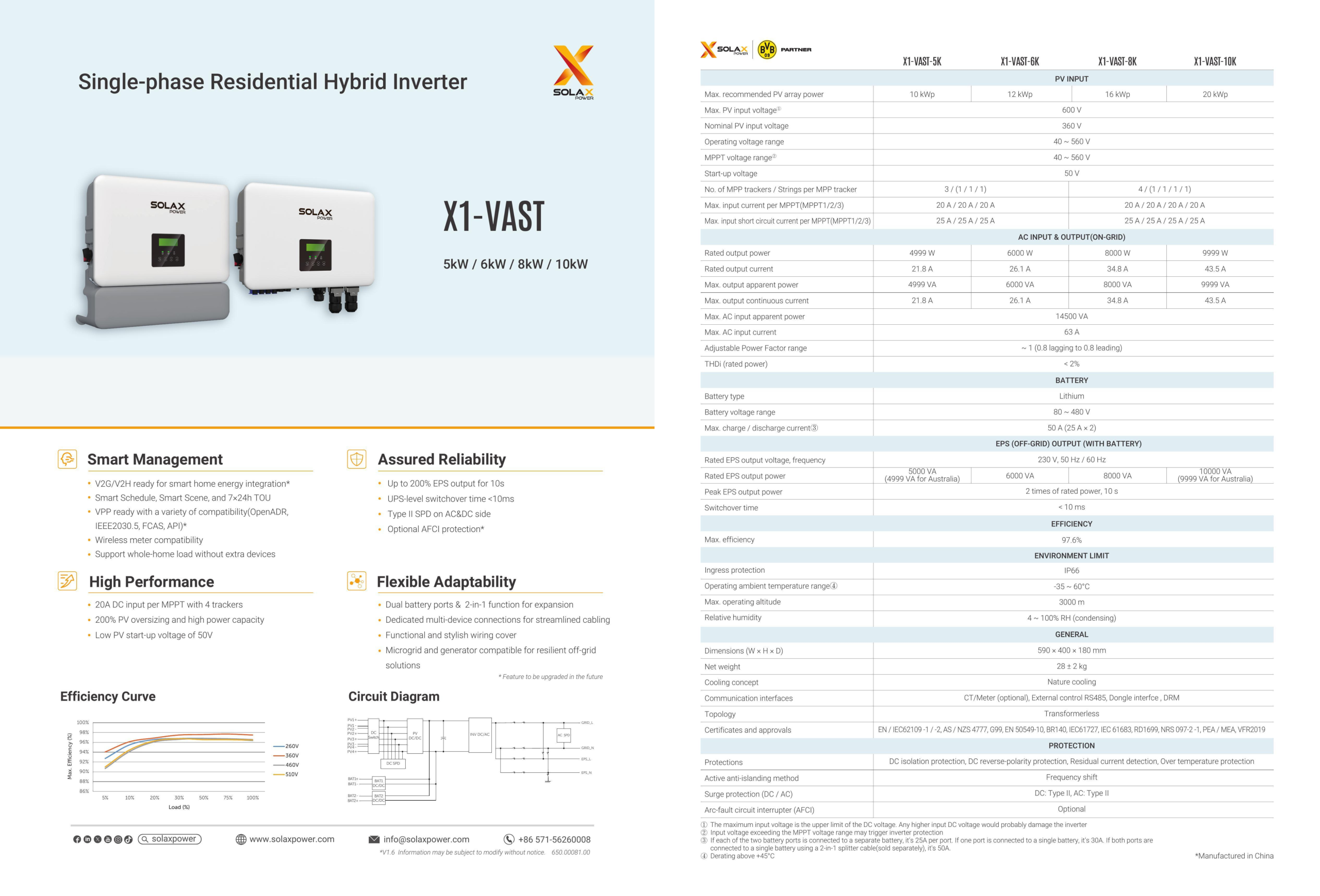| Thông số kỹ thuật | SolaX X1 VAST (5kW / 6kW / 8kW / 10kW) |