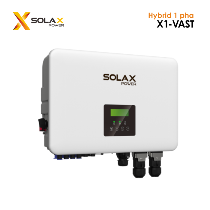 Biến Tần Inverter Solax Hybrid 1 pha X1 VAST là dòng biến tần hybrid một pha cao cấp được thiết kế dành riêng cho các hệ thống điện mặt trời dân dụng hiện đại. Với hiệu suất tối đa 97.6%, khả năng mở rộng pin linh hoạt, 4 MPPT độc lập cùng công suất lên tới 10kW, X1 VAST mang lại giải pháp lưu trữ và chuyển đổi năng lượng thông minh, ổn định, và bền bỉ vượt trội. Được phát triển bởi thương hiệu SolaX Power – nhà sản xuất inverter hàng đầu thế giới, X1 VAST không chỉ tối ưu hóa sản lượng điện mà còn hỗ trợ hệ thống điện dự phòng (EPS) mạnh mẽ, tương thích với máy phát điện và microgrid, mang đến nguồn điện sạch, liên tục và an toàn tuyệt đối.