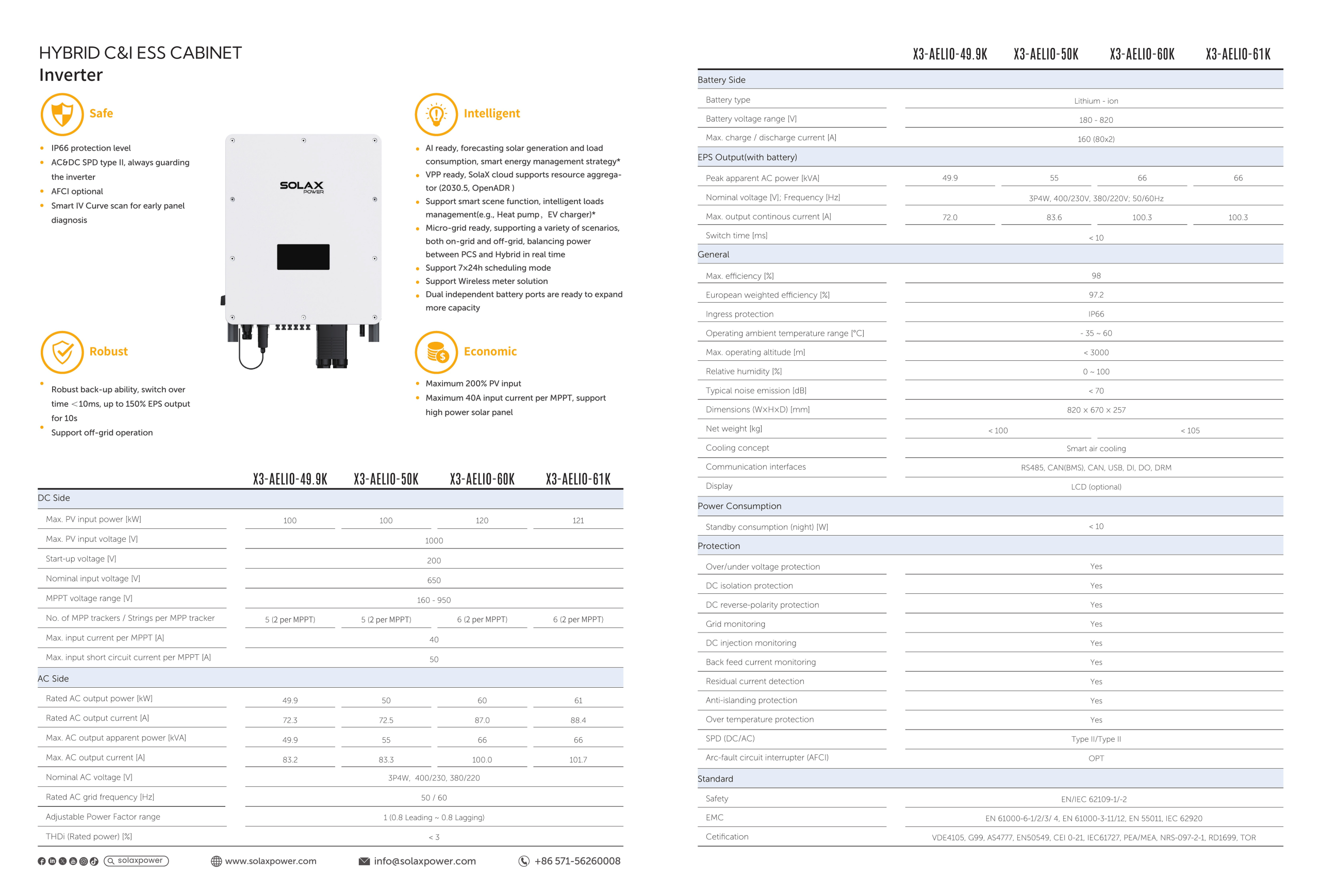 | Thông số kỹ thuật | SolaX X3 AELIO Hybrid 50kW (3 pha) |