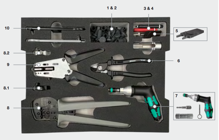 | Loại dụng cụ | Kìm bấm và kìm tuốt dây chuyên dụng cho MC4 & MC4-Evo 2 |