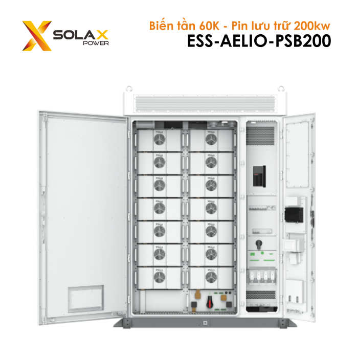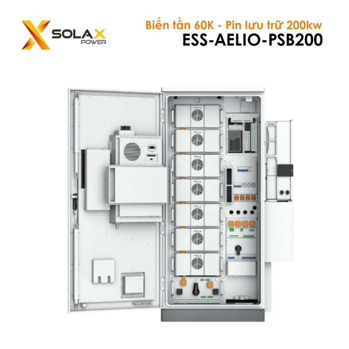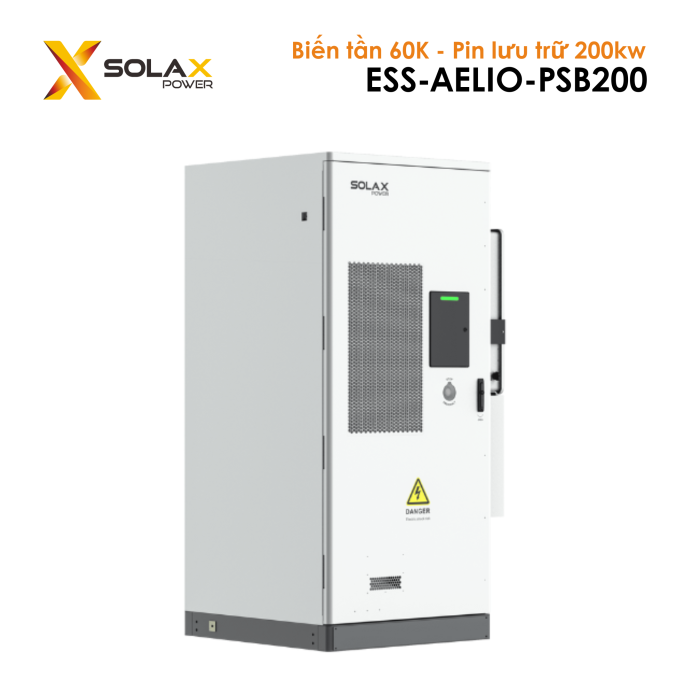 Trong kỷ nguyên chuyển đổi năng lượng xanh, SolaX ESS AELIO là biểu tượng của sự kết hợp hoàn hảo giữa biến tần thông minh và hệ thống lưu trữ năng lượng pin Lithium (LFP) công suất cao. Với công suất biến tần 60kW và dung lượng pin lưu trữ 200kWh, model ESS-AELIO-PSB100 mang đến giải pháp Hybrid ESS Cabinet toàn diện – mạnh mẽ, linh hoạt và sẵn sàng cho tương lai của năng lượng sạch.