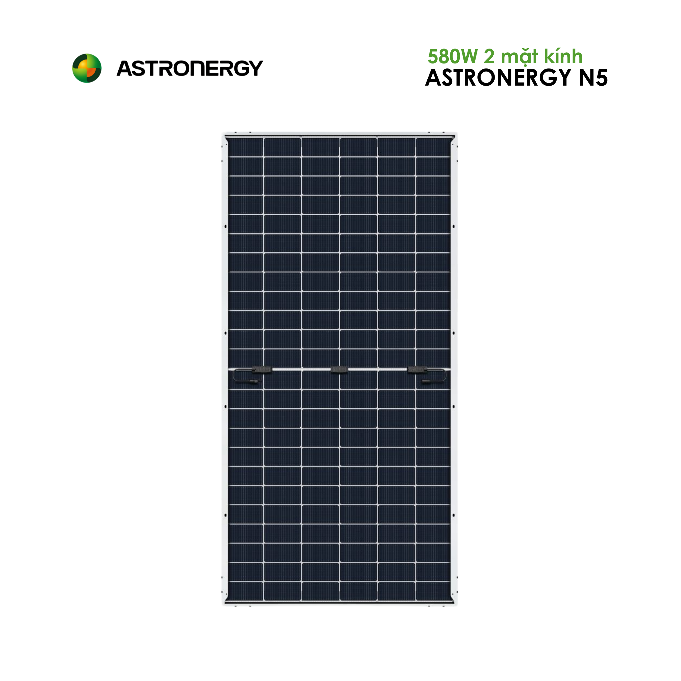Astronergy – thương hiệu Tier 1 toàn cầu với uy tín đã được khẳng định – mang đến dòng N5 Bifacial 580W N-Type hai mặt kính. Sản phẩm ứng dụng công nghệ TOPCon tiên tiến, thiết kế chắc chắn và hiệu suất ổn định, giúp tối ưu hóa chi phí đầu tư và nâng cao hiệu quả khai thác điện mặt trời trong dài hạn.