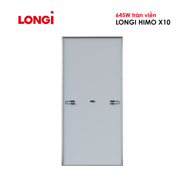 Tấm pin năng lượng mặt trời LONGi Hi-MO X10 645W tràn viền được trang bị công nghệ HPBC 2.0 tiên tiến, nâng hiệu suất module lên đến 23.9%. Với thiết kế viền đặc biệt chống bám bụi, khả năng hấp thụ ánh sáng hai mặt và độ bền vượt trội, sản phẩm mang lại hiệu quả lâu dài cho các dự án điện mặt trời thương mại và công nghiệp.