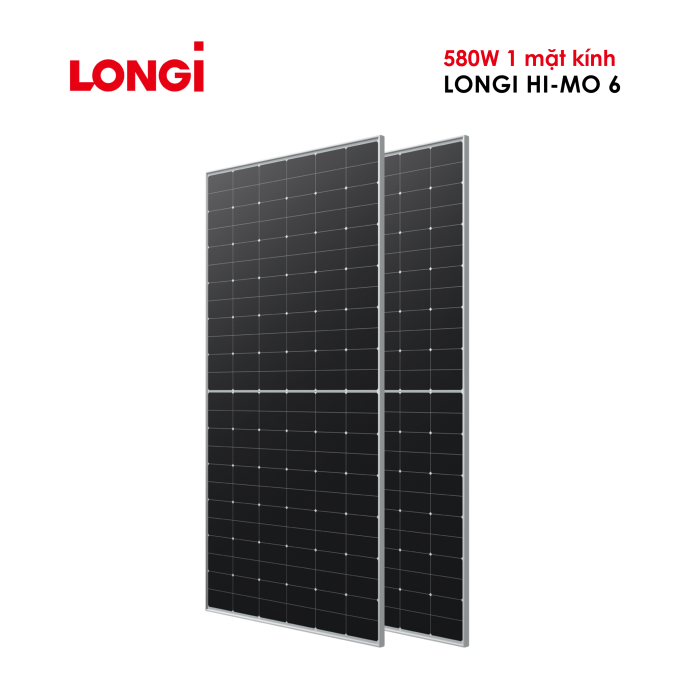 Tấm pin năng lượng mặt trời Longi Himo 6 580W một mặt kính (dòng LR5-72HTH) là giải pháp hoàn hảo kết hợp công nghệ hiện đại, thiết kế thẩm mỹ và hiệu suất vượt trội. Với công suất 580W, công nghệ bifacial hai mặt kính và thiết kế tràn viền sang trọng, sản phẩm mang lại hiệu quả tối đa trong sản xuất điện mặt trời, đồng thời nâng tầm giá trị công trình. Đây là lựa chọn hàng đầu cho các dự án thương mại, công nghiệp, trang trại năng lượng và hệ thống áp mái cao cấp.